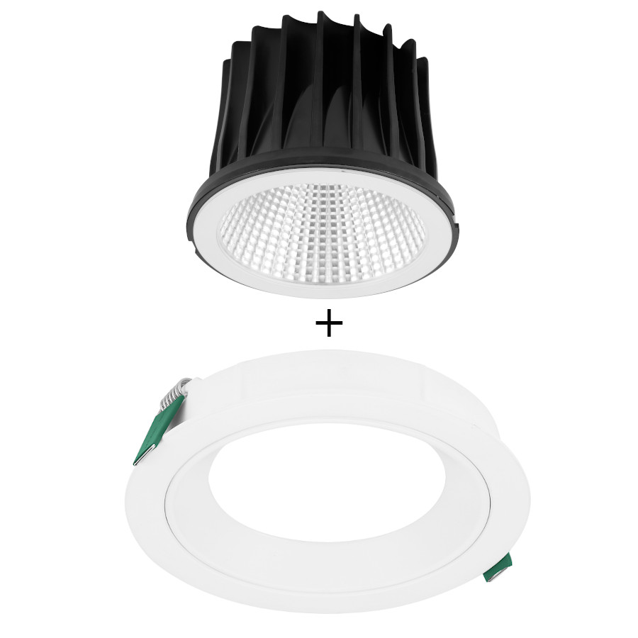Huom! Runko ja kehys tilattava erikseen - Valaisinyksikkö voidaan kiinnittää erilaisiin kehyksiin: kiinteä alasvalo, kallistettava tai suunnattava/kallistettava, saatavissa myös Wallwash-kehys ja pinta-asennuskotelo