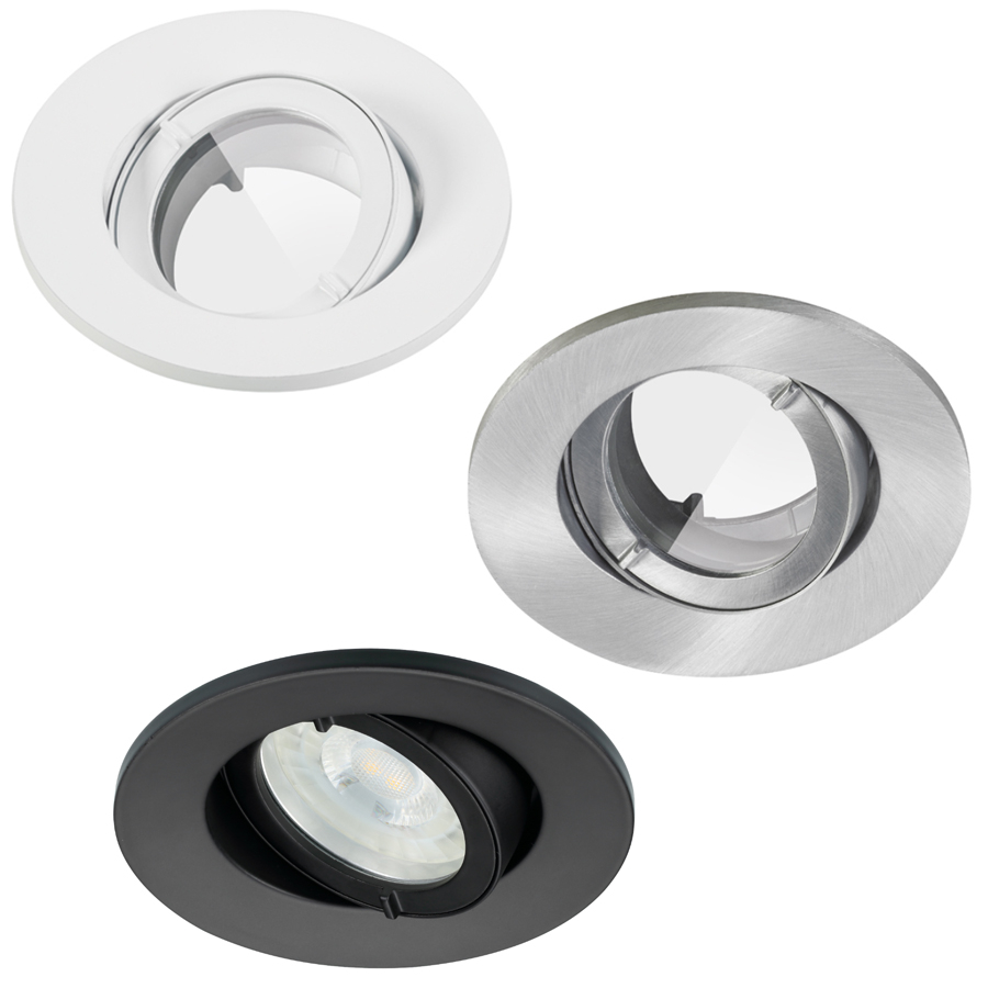 - IP23/IP20 Pyöreä: valkoinen, harjattu alumiini, kromi, musta