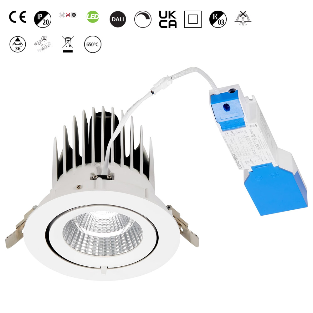 Signo on tehokas alumiinirunkoinen alasvalo erottuviin esillepanoihin myymälöihin. Saatavilla Multipower- ja DALI-ohjaimilla, joiden ansiosta voit valita valovirran 750–3800 lm. Täydellinen suunnattavuus: valaisinosan kallistus 60˚ ja kääntö 350˚.