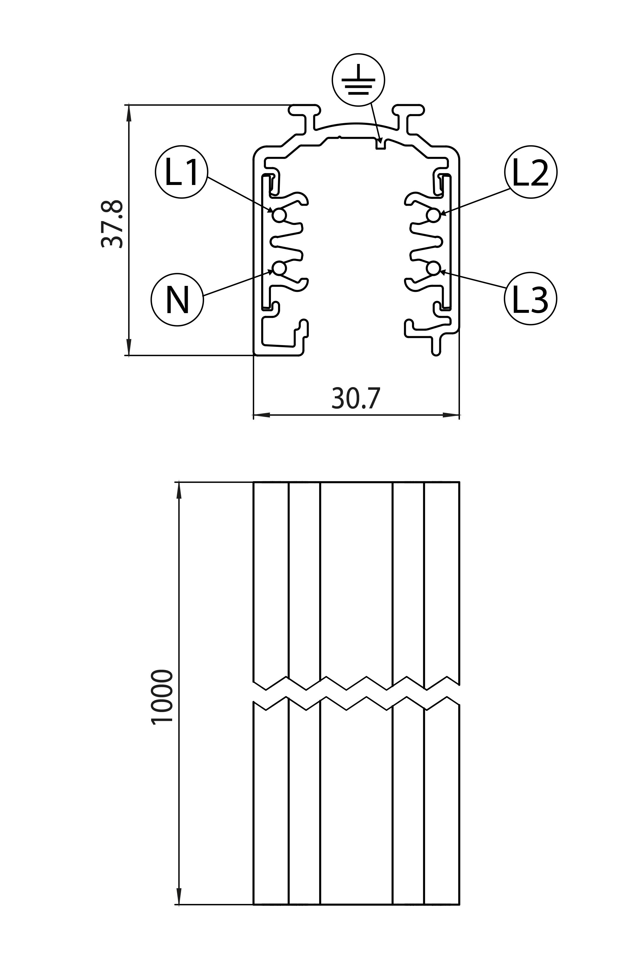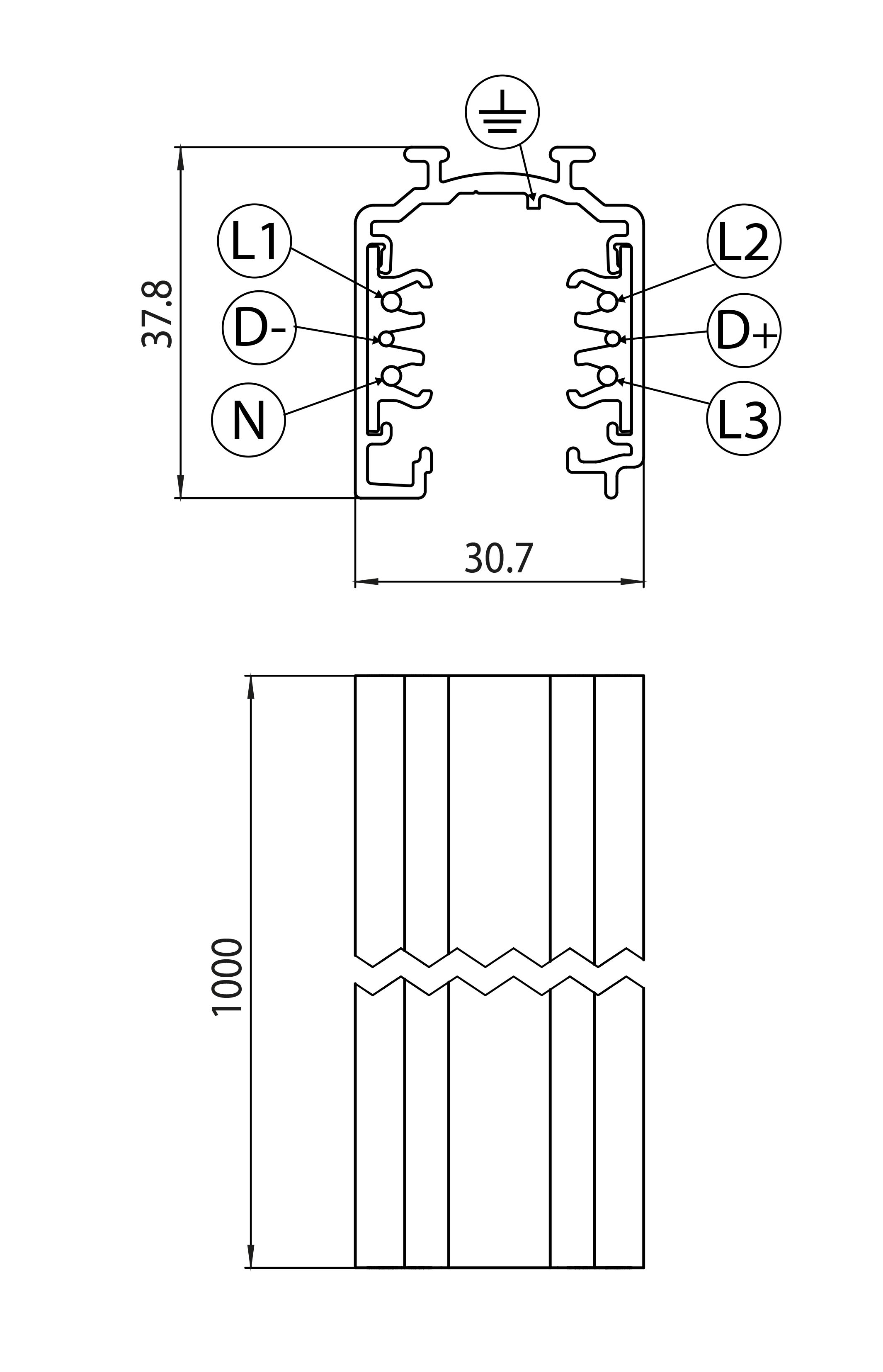 - OneTrack DALI: L1/L2/L3/nolla/maa 16A/440V + D+/D- 2x1A/50V FELV AC (DALI)
