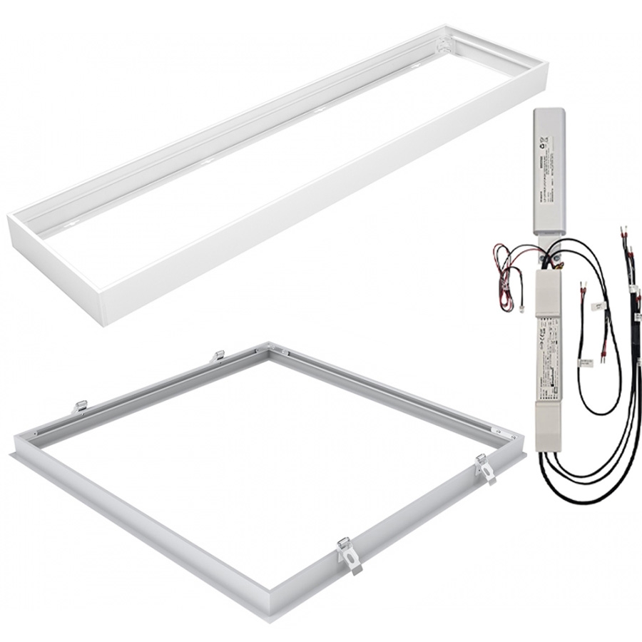 Paneeli- ja moduulivalaisimien asennuskehyssarjoja ja vaijeriripustussarjoja mallistoihin: Start Panel, Quantum ja Quadro.